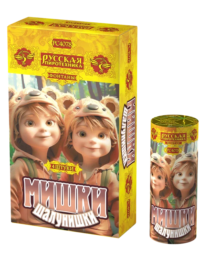 Пиротехнический фонтан Мишки-шалунишки Заволжск РС4078 купить 500 руб. высота форса 2 м. время работы 20 сек. Русская пиротехника ждём заказ магазин привезем вам на склад в Заволжске | zavolzhsk.torgsalut.ru