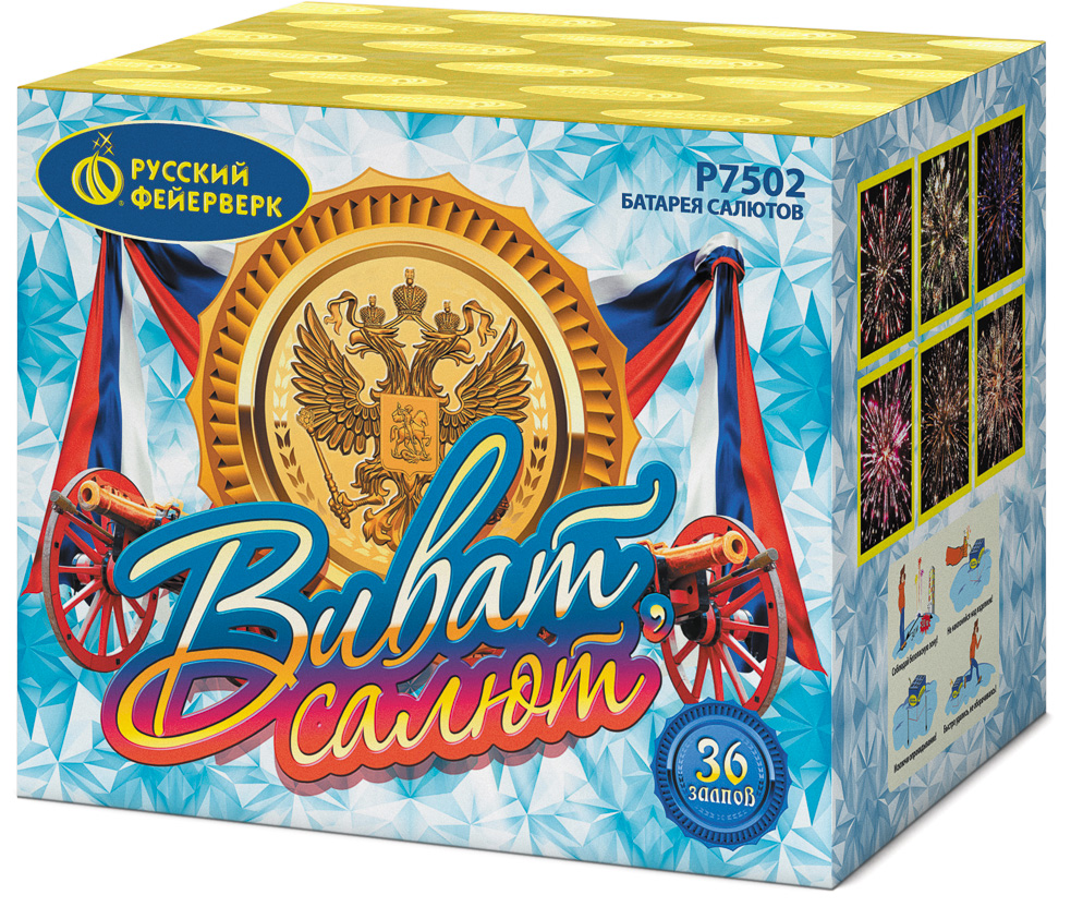 Фейерверк Виват, салют! Заволжск Р7502 купить 4 290 руб. 36 залпов Русский фейерверк магазин контакты отличные условия доставки в Заволжске | zavolzhsk.torgsalut.ru