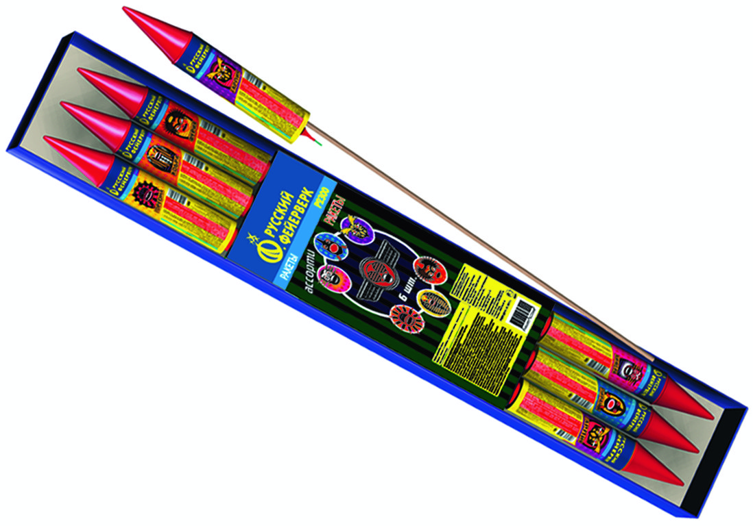 Ракеты Ракеты Ассорти Заволжск Р2300 купить 830 руб. упаковка 6 штук Русский фейерверк фирменный магазин отгрузка в день заказа в Заволжске | zavolzhsk.torgsalut.ru