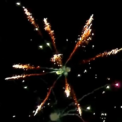 Разноцветные кометы, серебряные, трещащие искристые трассы разрываются сферами из: 1. золотых форсов с золотыми искрами и синих огней; 2. зелёных пульсирующих и фиолетовых огней; 3. трещащих искристых форсов; 4. синих и золотых мерцающих огней.